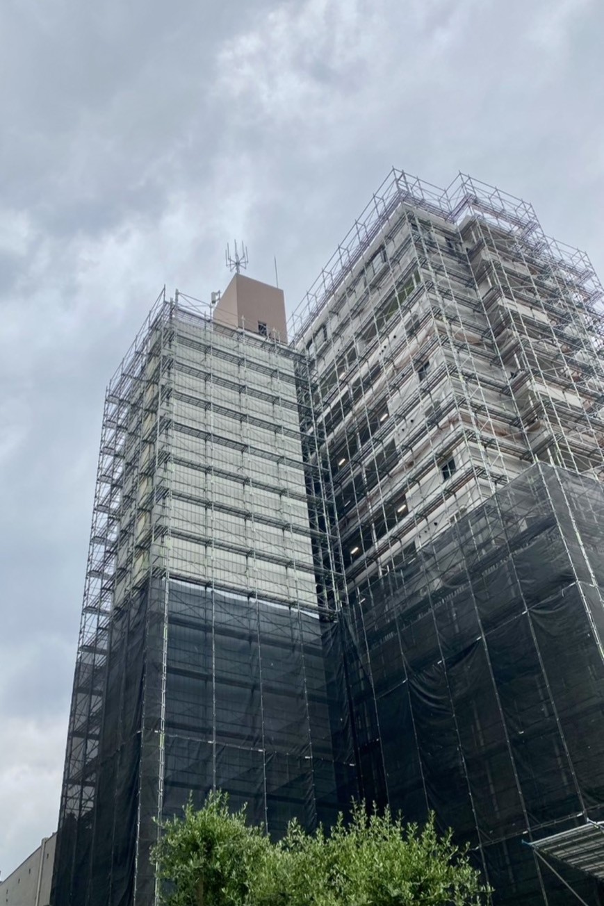 高層ビル大規模修繕の外部足場